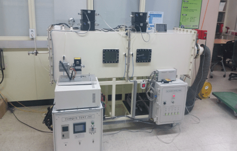 ANSI/AMCA 210-07 standards, Chamber type set-up,Certificated annually, Flow rate control: five nozzles inside the chamber & a servo blower behind the chamber, Power meter applied,Maximum flow rate: 3 m3/min, Maximum pressure: 3,000 mmAq, Transient measurement available